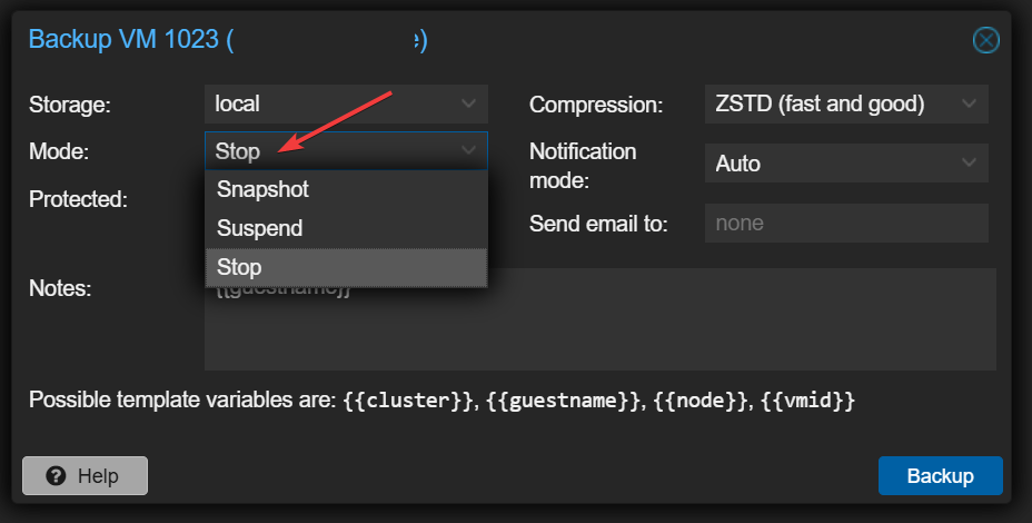 Backup the server before copying all the new software. We use proxmox so backing up a server is very easy. Always select Stop and not snapshot. Duh. This will obviously stop the server so shutdown Domino first.
