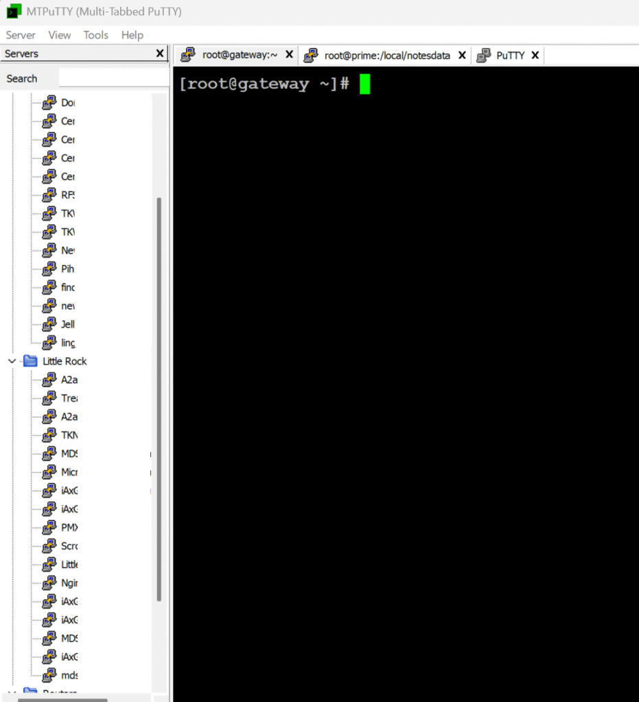 We use MTPuTTY to access the various severs via SSH. Its a great tool once you get past the multiple window scaling quirks.